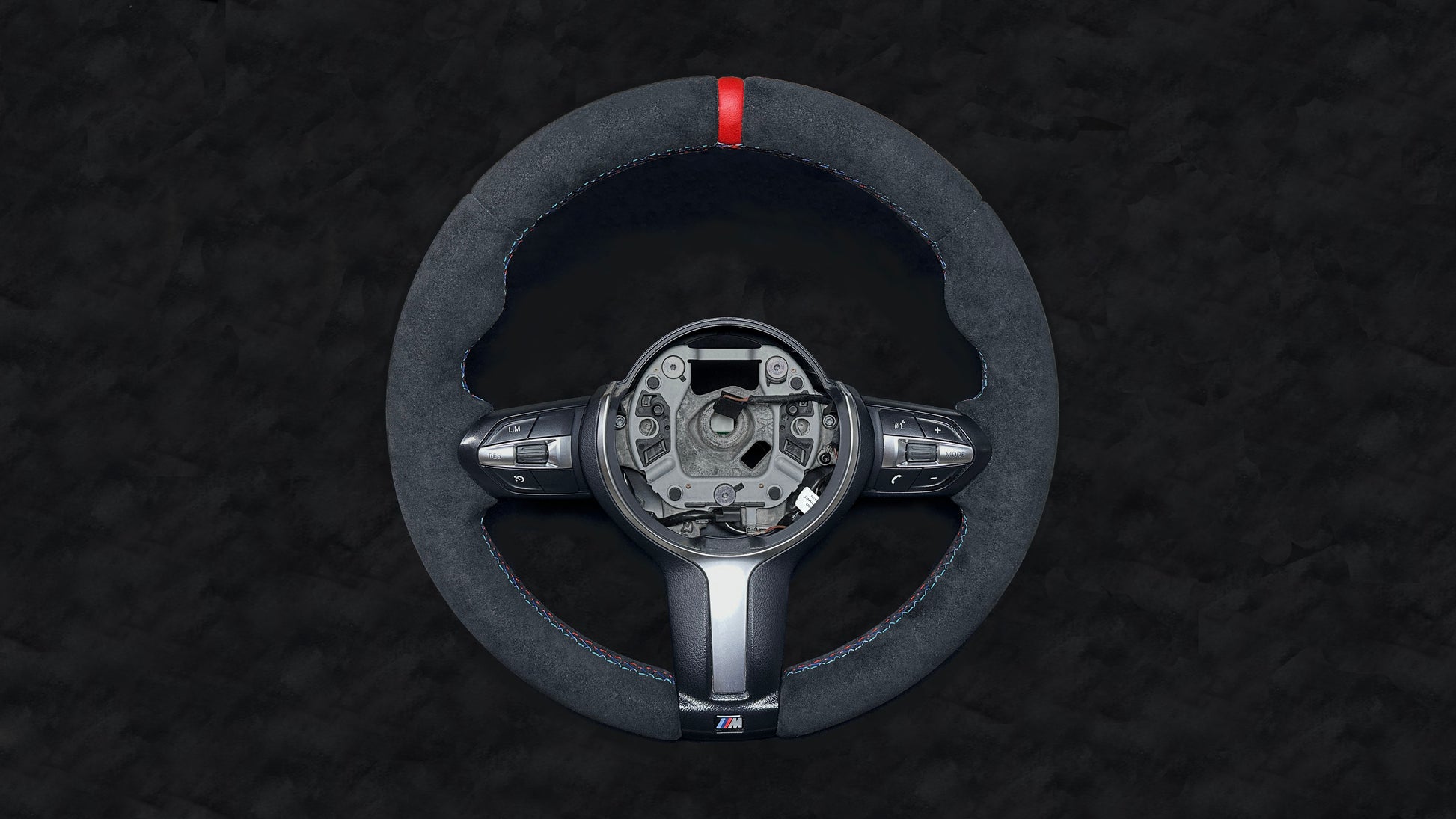 BMW 1, 2, 3, 4 Series Alcantara M Sport Steering Wheel Tricolor Stitching - Red Stripe (F2X, F3X, F8X)